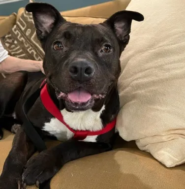 Nolla is a staff favorite and has a ton of personality! She can be shy at first but quickly warms up once she spends a little time with people. Her previous owners report that she was loving and loyal. Nolla has lived with cats…