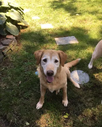 Bubba has very polite house manners and is friendly with people and dogs - he even had a Guinea pig sibling while in foster and was very gentle! Bubba loves to get affection and is a leaner, one of the best Lab leaners ever! Happily, this adorable guy was adopted by a couple who wanted to add another lab to the household. Their 15-year-old lab Sophie had recently lost her canine companion, but now, she and Bubba have each other.