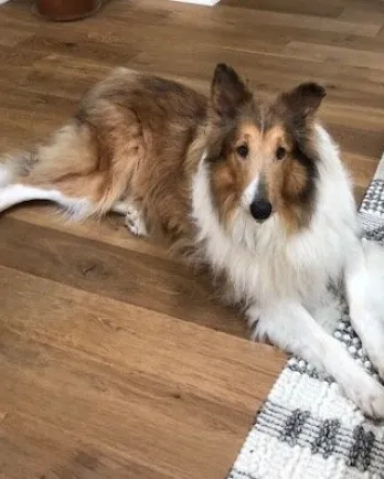 At a weight of 75 pounds, the vet says she also would benefit from losing 5-10 lbs., so we will work on this. She had two other collie siblings in her previous household, but has not had a chance to meet new friends yet (canine or feline). She is a calm, sweet & loving companion, who would be perfect for someone who is retired or works from home. She loves to "hang out" with her people.