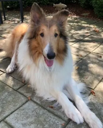 Rosa is a sweet, eight-year-old collie with impeccable manners, both inside the house and out. She is calm and very shy with strangers at first, but once she gets to know you, she is very loving and affectionate. Her initial shyness comes from her partial blindness. She has limited vision in her right eye, and completely blind in her left eye. However, we are amazed at how quickly she has adapted to her inside and outside surroundings. She prefers to be on a leash at first, so she can follow you and get to know her new environment. She will need a couple days to learn the layout of her new home & yard, and once she does, she becomes more confident and is easily able to navigate her surroundings on her own.