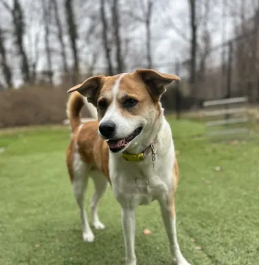 Gabe is a super-friendly fox red Lab who’s a whiz at food puzzles! He’s an energetic and playful seven-ish years old who weighs about 60 pounds. Gabe came to us as a neglected stray who is quite the happy, handsome character now!…