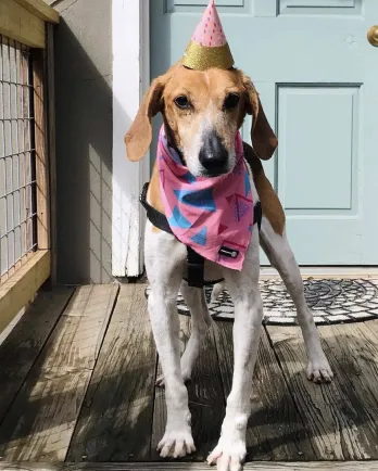 Low-key and goofy, Sherman quickly became a staff and volunteer favorite. He finished his heartworm treatment like a champ, celebrated a birthday, and was soon adopted by a hound-lover. We are so excited to report that Sherman will spend his golden years living a pampered life!