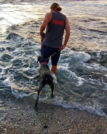 much more confident. She loves to go to the beach and for rides in the car. Summer is fine around cats and other dogs and loves people.