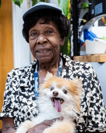 At 17 years old, Trouble may have mellowed with age, but this spunky Pomeranian mix still has plenty of love and personality to share. Alongside his devoted owner, Dovie May, Trouble has spent his golden years in joyful companionship, proving that age is just a number when it comes to love.