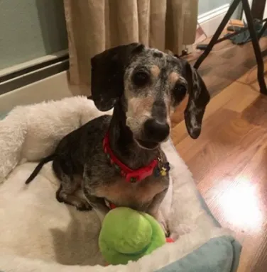 This sweet, nine-year-old, long-haired Dachshund mix has had some drama in his life. In his younger years, Puzon was attacked by another dog who severed his esophagus, which has made it difficult for him to eat ever since. Then…